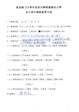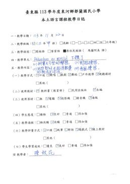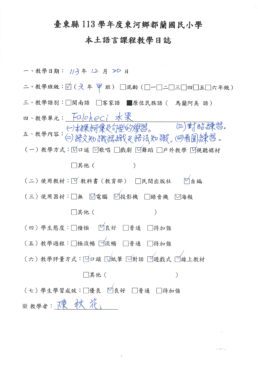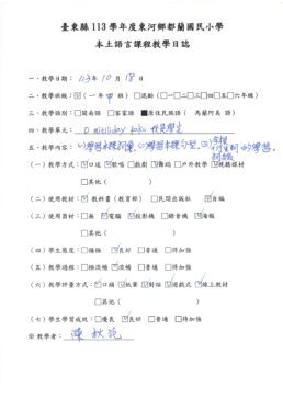 1.本土語教師每次上課後填寫教學日誌,可以清楚的檢視自己的教學,進行滾動式的修正。